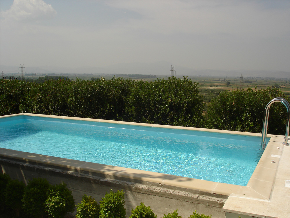 Κατασκευάζεται εξ ολοκλήρου από οπλισμένο σκυρόδεμα με τοιχεία μεταβαλλόμενου βάθους και δέχεται κάθε είδους επένδυσης (βαφή, πλακάκια , ψηφίδα και liner).